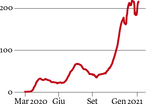 Negli Stati Uniti dovranno passare settimane prima che i dati sull’andamento della pandemia di covid-19 comincino a migliorare. Dall’inizio di dicembre i contagi quotidiani sono stabilmente sopra i 200mila e i morti più di duemila, e continueranno a crescere nella seconda metà di gennaio e all’inizio di febbraio, perché non è stato fatto molto per ridurre i contagi durante le vacanze di Natale. Intanto il piano vaccinale non sta funzionando come previsto. Le autorità sanitarie avevano intenzione di vaccinare venti milioni di persone entro la fine dell’anno, ma al 31 dicembre erano state somministrate solo 2,8 milioni di dosi. “Questo soprattutto perché molti ospedali in tutto il paese non hanno personale e risorse sufficienti”, scrive l’Atlantic.