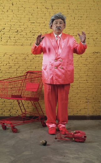 Per vent’anni anni, dal 1997, l’attore tailandese Sompong Thawee ha lavorato con il fotografo Manit Sriwanichpoom indossando sempre lo stesso abito. Un completo di seta rosa sgargiante, con scarpe di vernice e calze abbinate. Anche il suo telefono era rosa, come il carrello del supermercato che trascinava. Praticamente un personaggio monocromatico, che mostrava sempre un’aria distaccata, un po’ imbronciata e inespressiva.