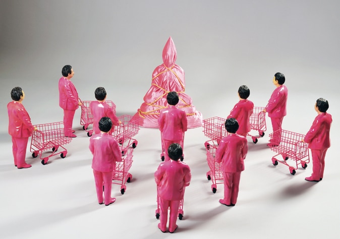 “L’idea di Pink man mi è venuta mentre ero in un centro commerciale di Bangkok che aveva appena aperto. L’edificio era enorme, come una fabbrica, molto luminoso, con migliaia di lampade fluorescenti e prodotti di ogni tipo sistemati in modo ordinato. C’erano molti clienti, riempivano i loro carrelli di prodotti, si mettevano in fila alle casse. Mi sembrava di essere al luna park. Così mi sono chiesto: fino a che punto il consumismo ci fa il lavaggio del cervello? Quello che possediamo fa da base a quali valori? Il personaggio di Pink man esprime il mio smarrimento di fronte a un’idea di consumismo accettata dalla società tailandese senza alcuna riflessione. Penso che questo sistema ci controlli senza permetterci di realizzare noi stessi. Siamo obbligati ad agire tutti nello stesso modo; stiamo andando verso l’omologazione”.