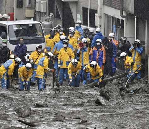 Frane Una gigantesca colata di fango, dovuta a piogge torrenziali, ha investito la città costiera di Atami, nel Giappone centrale. Si contano sette morti e 27 persone disperse.