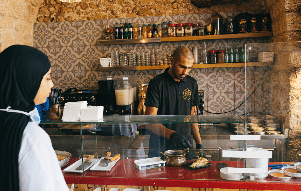 Farah Abu Nijem, 42 anni, e Shehadeh Abu Shehadh, 32, si occupavano di riparare i condizionatori. Nelle pause parlavano spesso di cucina, ricorda Abu Nijem in un ottimo francese, eredità di una formazione al Collège des frères, istituto cattolico di Jaffa. Barba folta e copricapo, Abu Nijem racconta che desiderava da sempre diventare imprenditore. Un giorno il collega rientrato da Istanbul gli ha decantato i sapori del kanafeh alla turca. Tra un giro di cacciavite e l’altro, Abu Shehadeh ha fatto il kanafeh con un tostapane. Eureka! “Era delizioso e ho subito immaginato di servirlo con una palla di gelato sopra”.