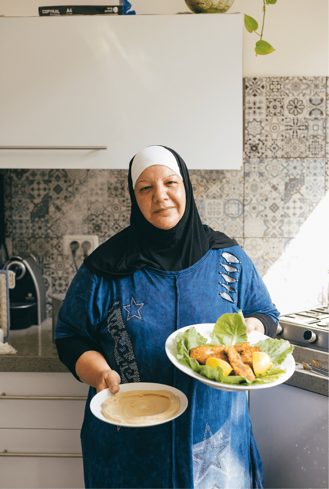 A poche strade di distanza, al terzo piano di un vecchio palazzo, Zinat Kassas è ai fornelli, mentre guarda distrattamente una serie egiziana in tv. Cuoca in un centro per disabili, Zinat Kassas ha creato nel quartiere una specie di tavola calda. Sia per l’aid sia per lo shabbat (i giorni di festa arabi e ebraici) la gente si passa il suo numero di telefono per ordinare couscous o makluba (il pollo con il cavolfiore “capovolto”, tipico piatto palestinese). Ma la sua specialità, l’unica che esce dal registro arabo, è lo schnitzel, che ha preparato anche per il matrimonio del figlio.