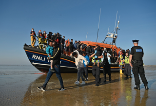 Un gruppo di migranti tratti in salvo da una nave della Royal national lifeboat institution (Rnli) mentre attraversavano il canale della Manica. Da gennaio più di 13mila… Leggi