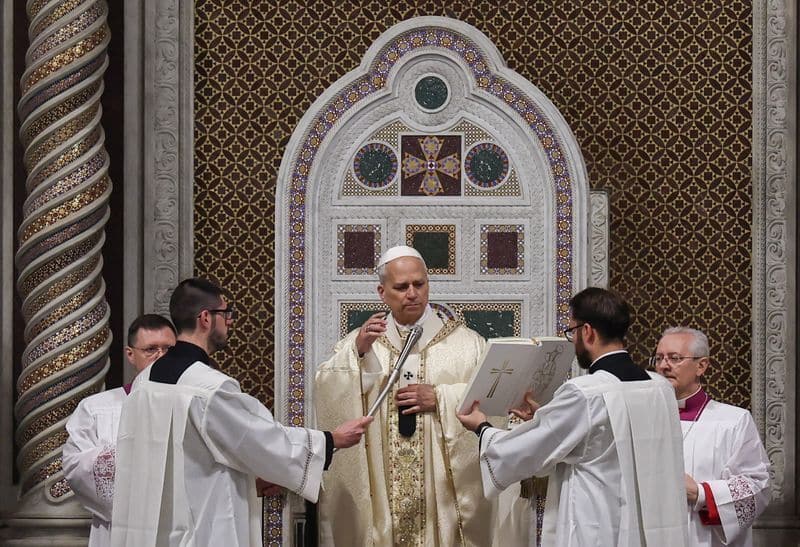 Leo, who became pope last May, was leading a service for Holy Thursday, the first of four event-filled days leading to Easter on Sunday.